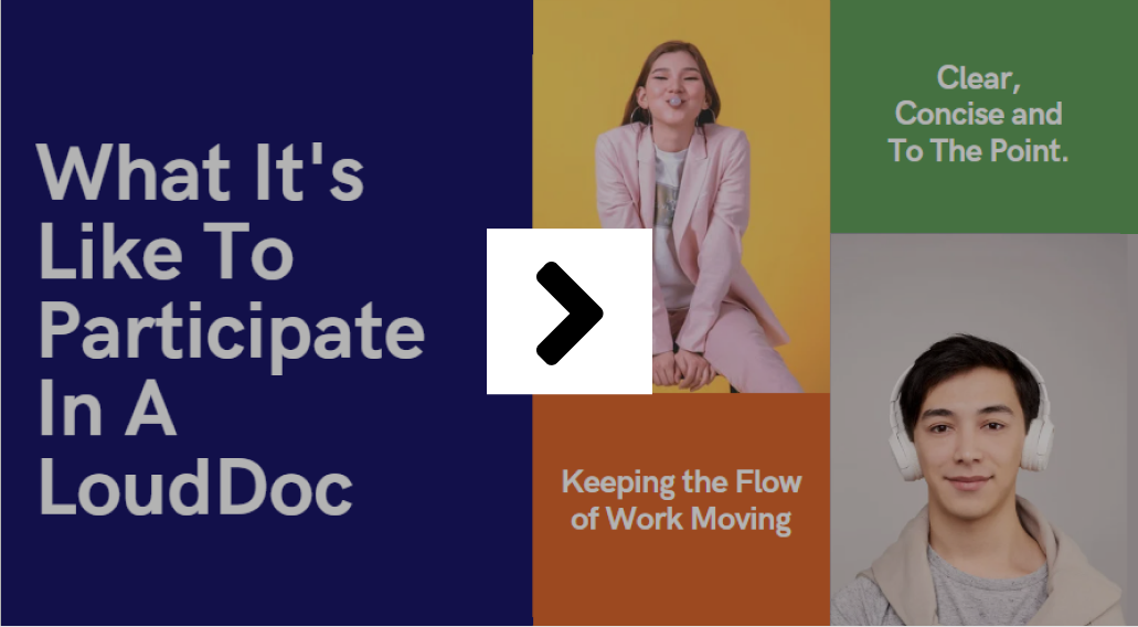 LoudDoc is an unscheduled conversation where participants have a shared, productive dialogue across time, not in real time. Unlike in person, where everyone needs to be together at a specific time, Louddoc documents allows clients, teammates, students and stakeholders to learn, absorb, and give feedback at their convenience.